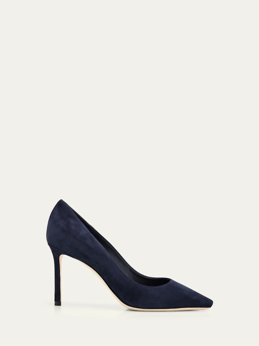 Jimmy Choo's "Romy" pumps are crafted from supple suede 3.25 in / 85 mm stiletto heel Pointed toe Slipon style Rubber outsole Lining: Leather Made in Italy