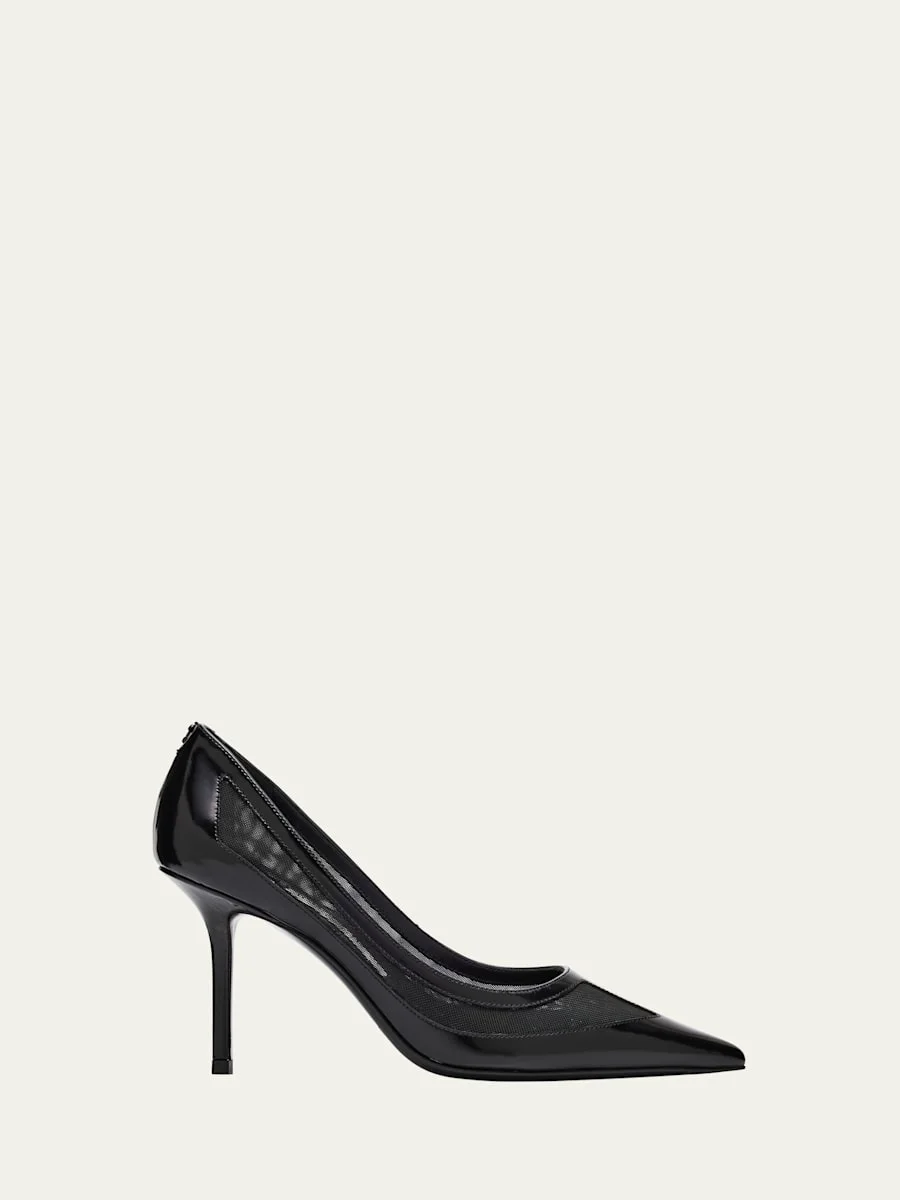 Jimmy Choo "Love" leather pumps with Phifertex® vinyl mesh insets 3.25 in / 85 mm stiletto heel Pointed toe Slip-on style Leather/Rubber outsole Lining: Leather Made in Italy Size Note: Jimmy Choo runs small. We suggest that you order a half size larger than you typically wear. Online Inquiries: BGS21_X6XS8| Store Inquiries: #5043115