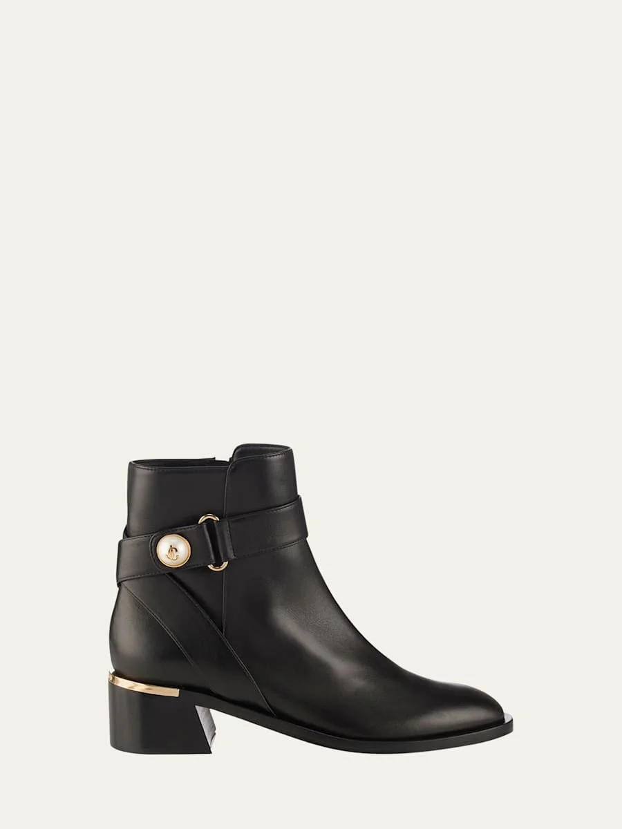 Noor Leather Pearly-Button Ankle Booties