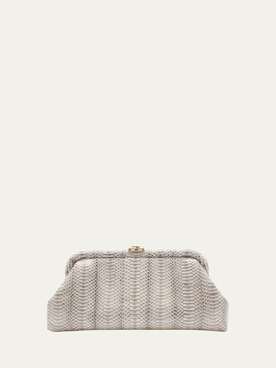 Skylar Snake-Print Leather Clutch Bag with JC Clasp