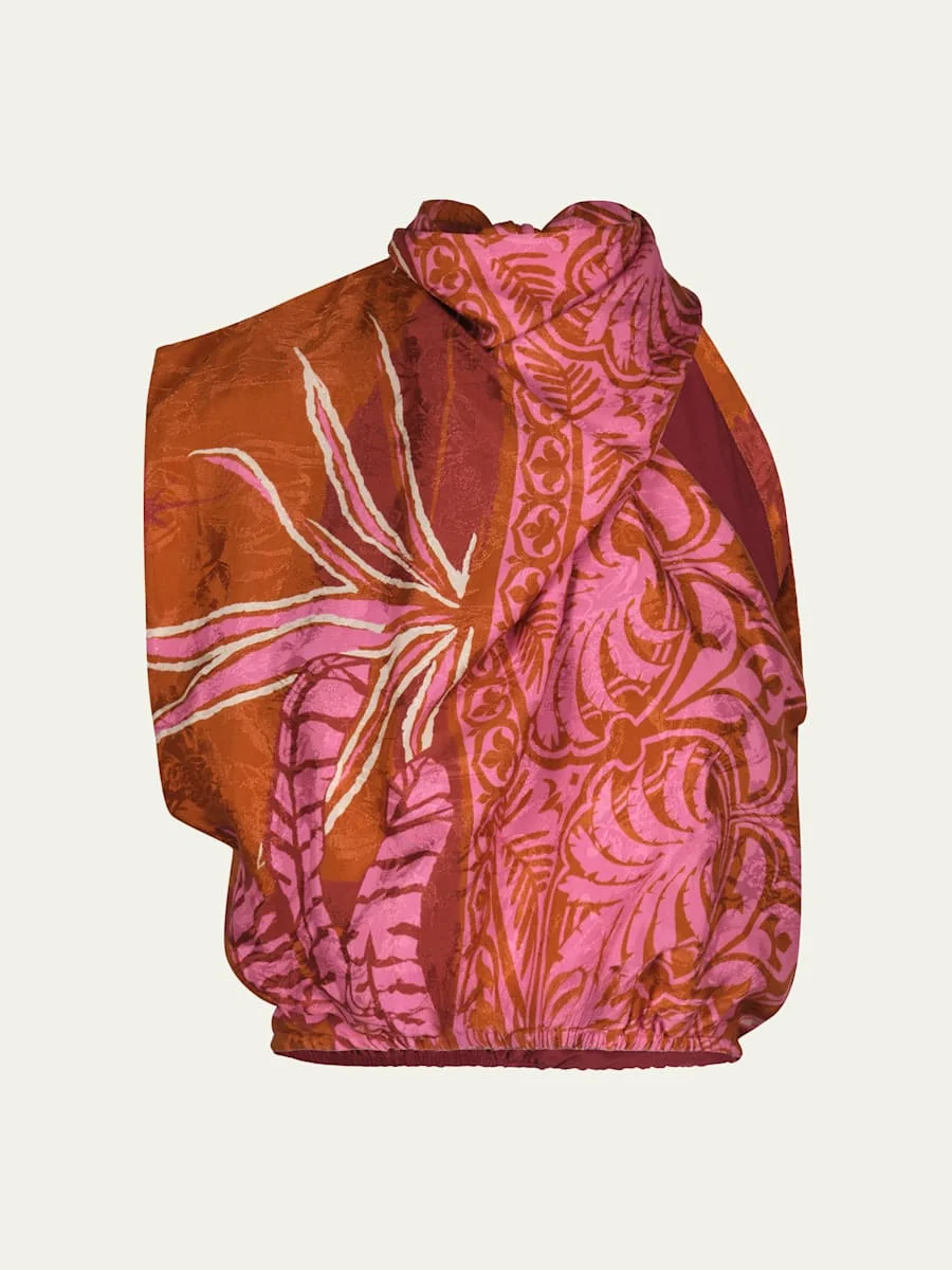 Crafted from printed lustrous jacquard, the "Natural Harbor" top from Johanna Ortiz features soft volume through the body and a gathered neckline Cowl neckline Sleeveless Loose fit Cropped length Elasticized hem Selftie back Viscose Made in Colombia