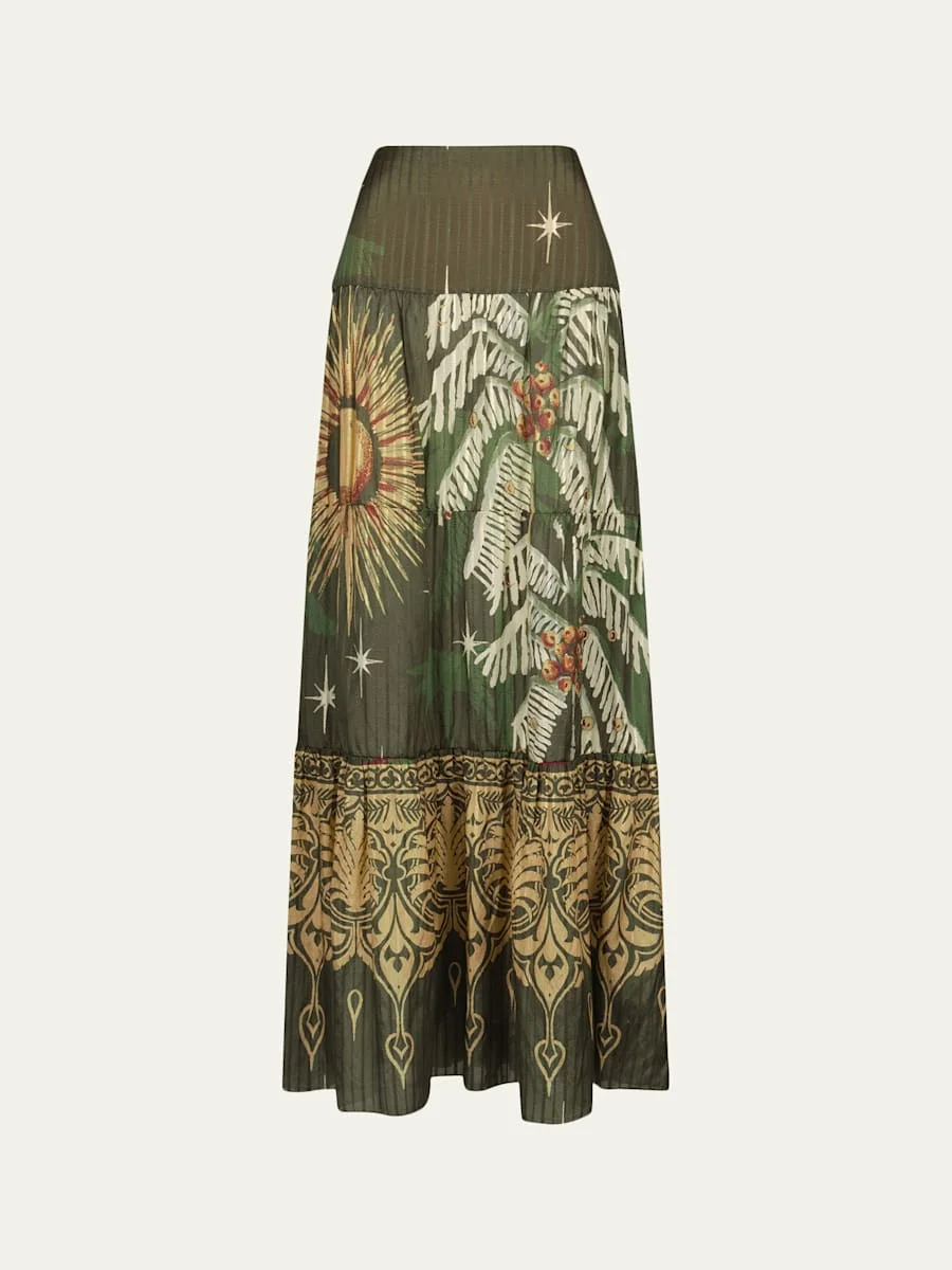 Relatos De Mi Tierra Tiered Silk Maxi Skirt