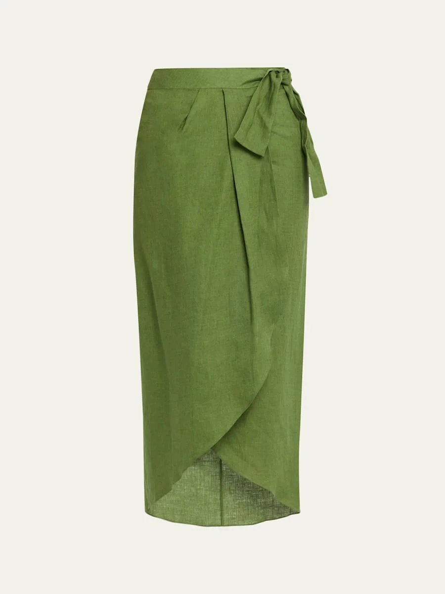 Safari Linen Midi Wrap Skirt