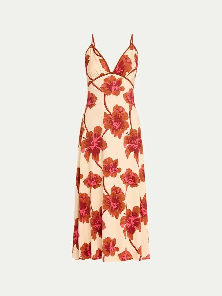Johanna Ortiz "Sendero De Astromelias" dress featuring a floral print and an empire waist Approx. 47.1"L from shoulder to hem V necklne Sleeveless Ankle length A-line silhouette Zip closure Viscose/elastane Lining: Polyester/elastane Dry clean Made in Colombia Online Inquiries: BGS21_BA7YR| Store Inquiries: #5049204