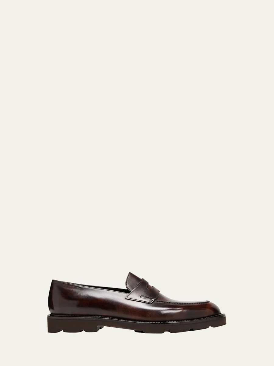 Men's Lopez Apron-Toe Leather Penny Loafers