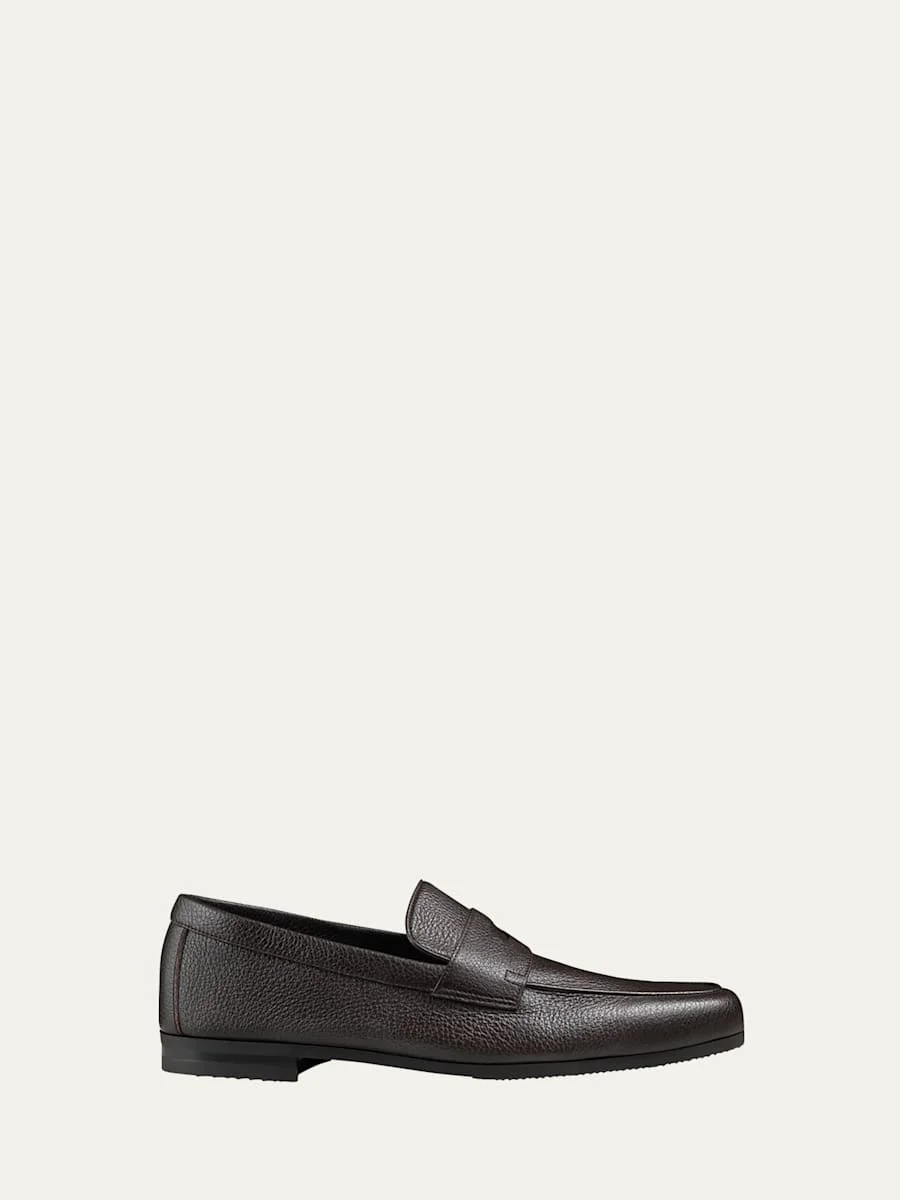 John Lobb “Thorne” loafers in soft textured calf leather and rubber Stacked heel Almond toe Notched vamp Penny keeper strap Leather lining Non welted Rubber outsole Made in Italy Online Inquiries: BGS21_N8YYV| Store Inquiries: #4250153