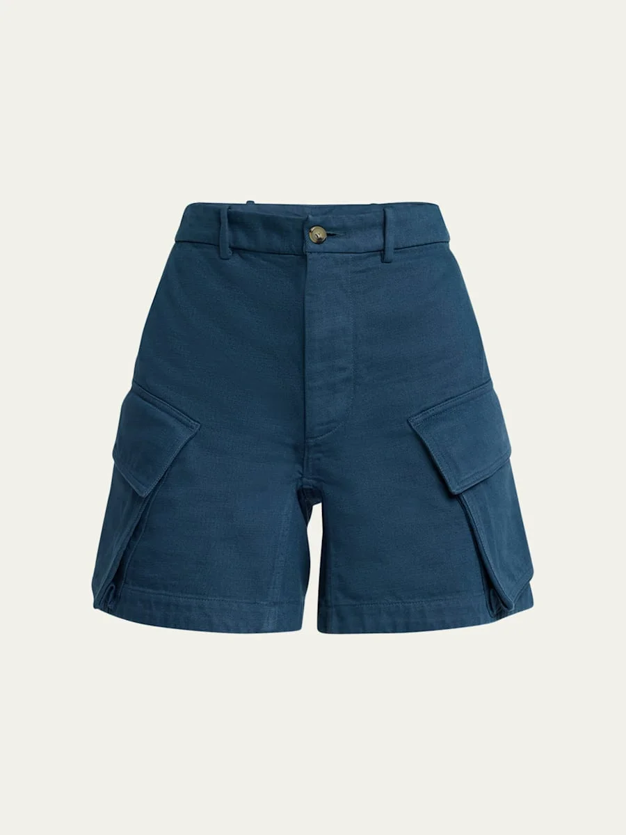 JW Anderson shorts with cargo pockets High rise Relaxed fit Mid-thigh length Back pocket Button/zip fly; belt loops Cotton Hand wash, machine wash line dry Made in Portugal Model is 5'10"/177cm. Online Inquiries: BGS21_B9P80| Store Inquiries: #4933353