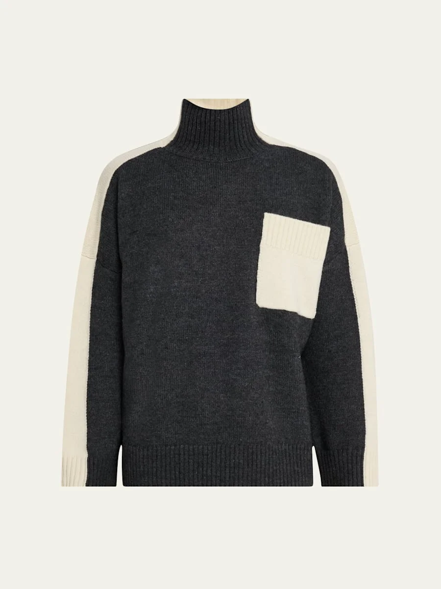 JW Anderson bicolor sweater Ribbed turtleneck Chest patch pocket Dropped shoulders Long sleeves Ribbed cuffs and waistband Pullover style Wool/acrylic Imported