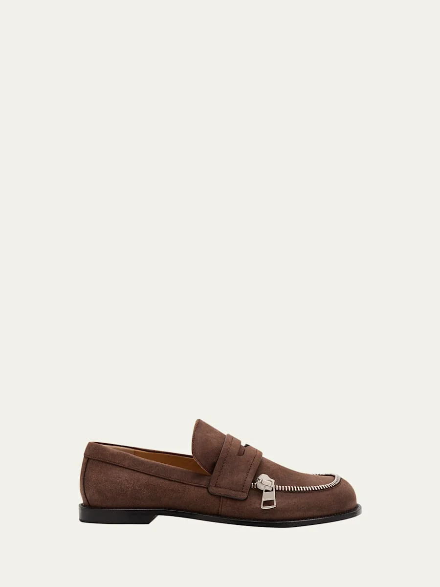 JW Anderson leather loafers finished with a bikerstyle zipper detail 0.50 in / 15 mm flat heel Round moc toe Notched vamp with keeper strap Slipon style Leather outsole Lining: Leather Made in Italy