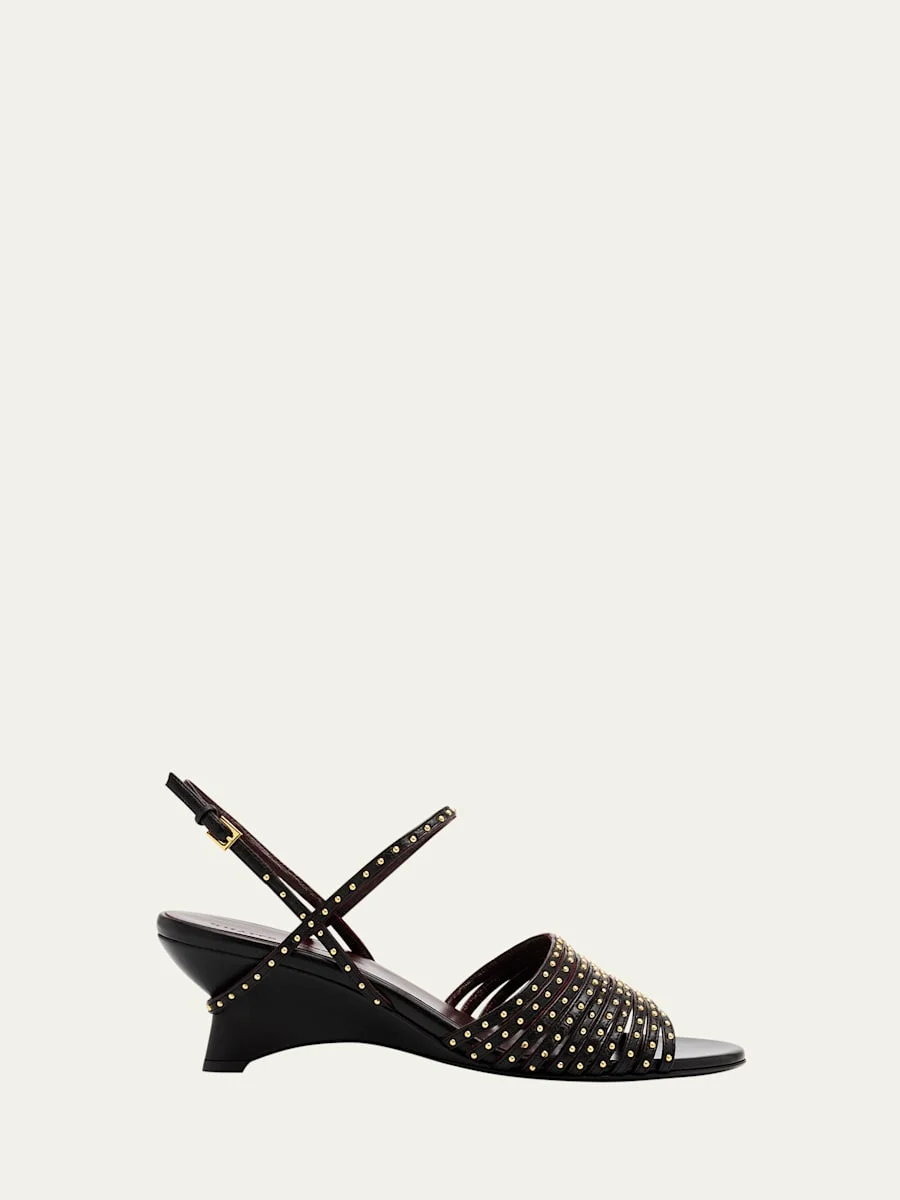 Crafted of studded calf leather for an edgy feel, the "Drew" commaheel sandals feature multiple straps across the toe that create a cageinspired vamp. 1.38 in / 35 mm comma heel Rounded open toe Adjustable ankle strap Leather outsole Professional cleaning recommended Made in Italy
