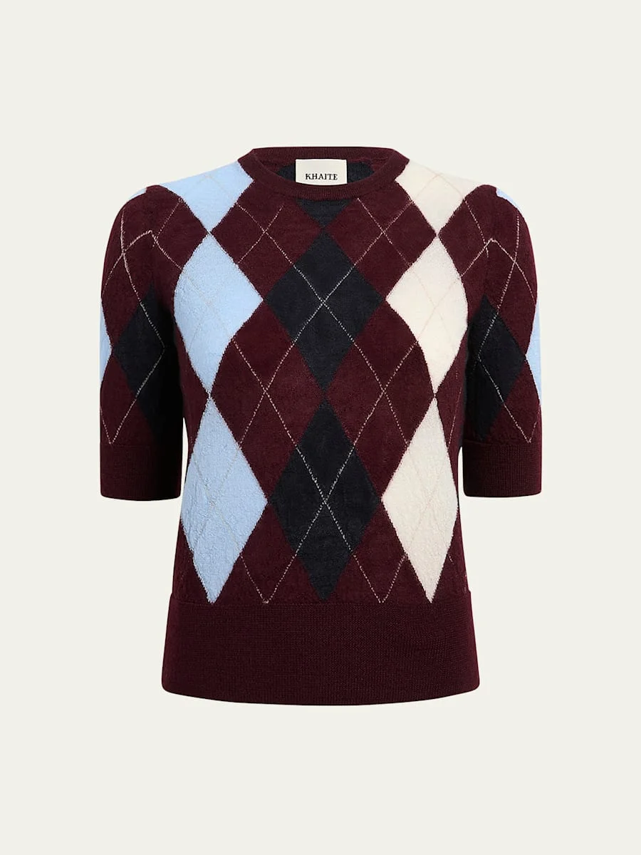 Anders Argyle Cashmere Short-Sleeve Sweater