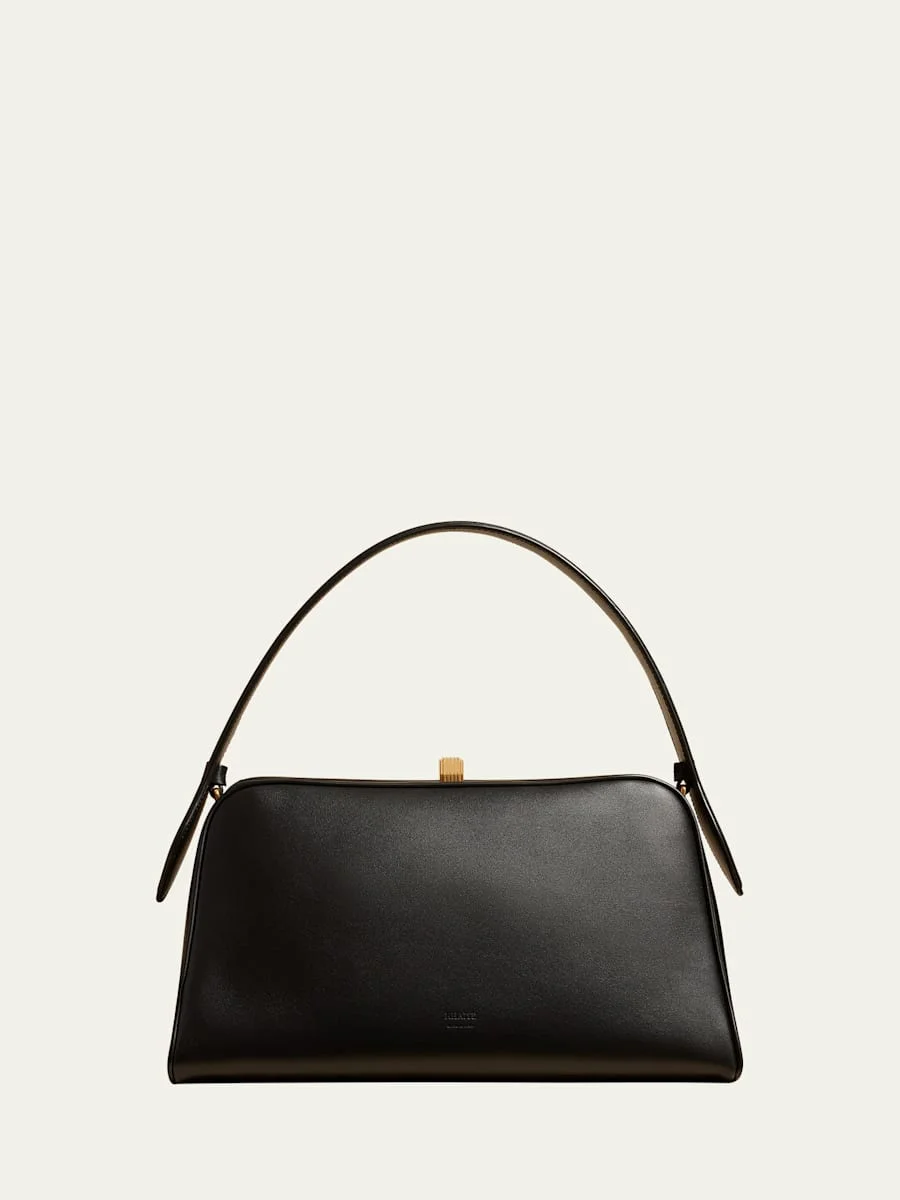 Khaite "Cate" top handle bag in smooth calfskin leather Top handle Can be worn as a top handle or shoulder bag Frame top with lift-clasp closure Approx. 5.5"H x 11.8"W x 6.5"D Made in Italy Online Inquiries: BGS21_V6A4L| Store Inquiries: #4851044