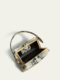 Khaite "Cate" top handle bag in python-embossed calf leather Top handle Framed top with lift-clasp closure Approx. 5.5"H x 11.8"W x 6.5"D Made in Italy Online Inquiries: BGS21_V6A4Q| Store Inquiries: #4851048