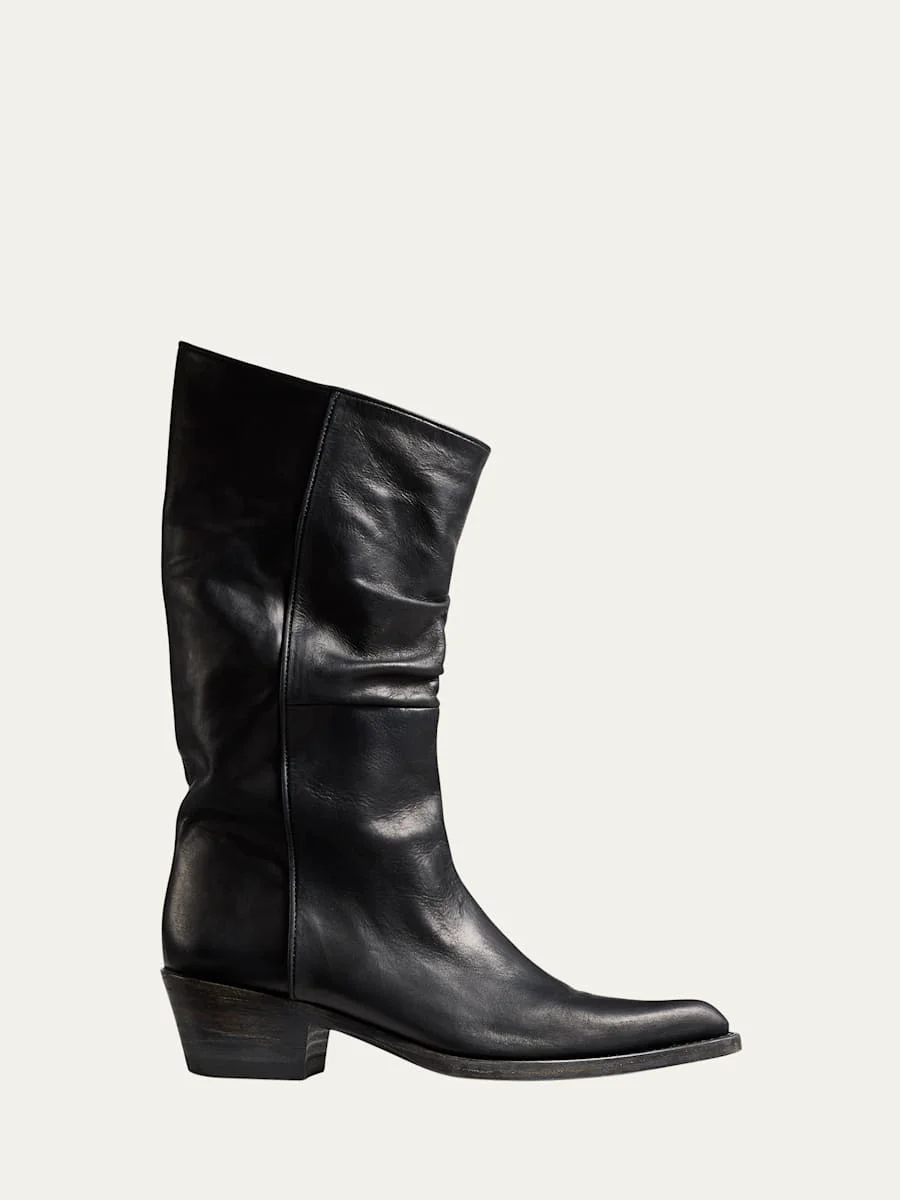 Khaite "Clive" soft calf leather moto boots 1.00 in / 25 mm block heel Pointed toe Pull-on style Leather outsole Lining: Unlined Professional cleaning recommended Made in Italy Online Inquiries: BGS21_X6VW4| Store Inquiries: #5008717