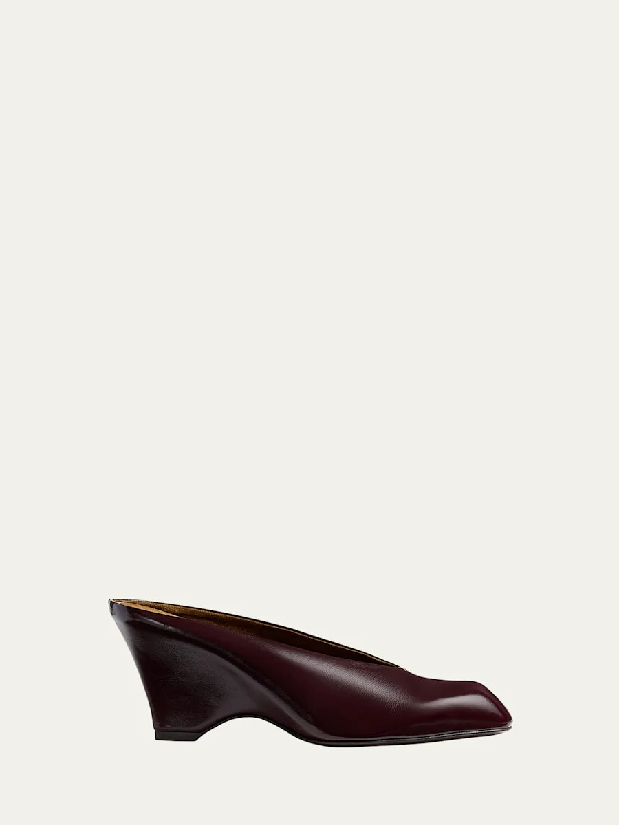 Khaite "Colt" wedge mules in calfskin leather 3.00 in / 75 mm covered wedge heel Square toe Easy slide style Leather outsole Lining: Unlined Professional cleaning recommended Made in Italy Online Inquiries: BGS21_X6X9Q| Store Inquiries: #5033370
