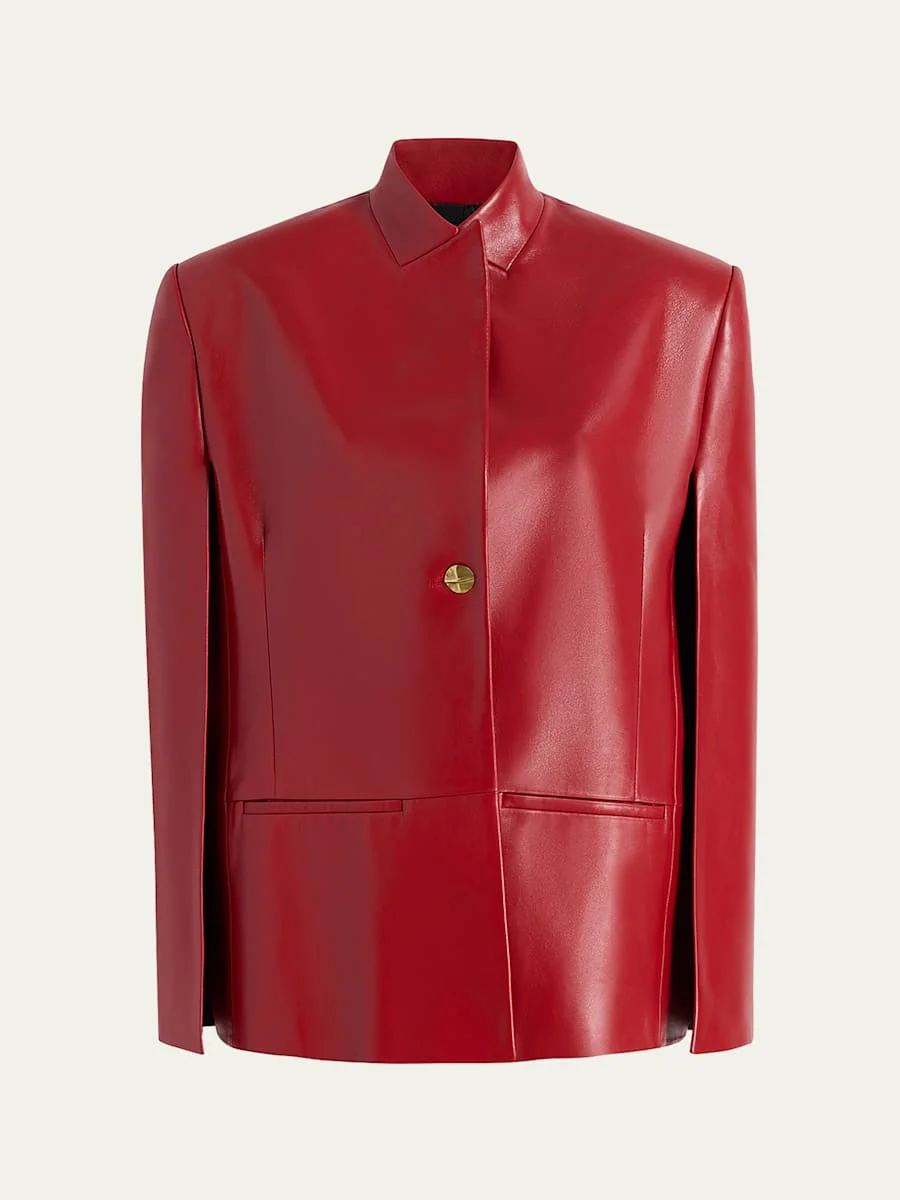 Dolso Single-Breasted Leather Cape Jacket