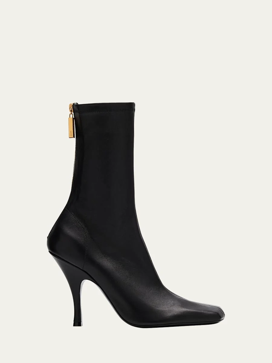Khaite "Eva" stretch calf leather ankle booties 4.00 in / 100 mm stiletto heel Square toe Back zip eases dress Leather outsole Professional cleaning recommended Made in Italy Online Inquiries: BGS21_X6RJJ| Store Inquiries: #4913251