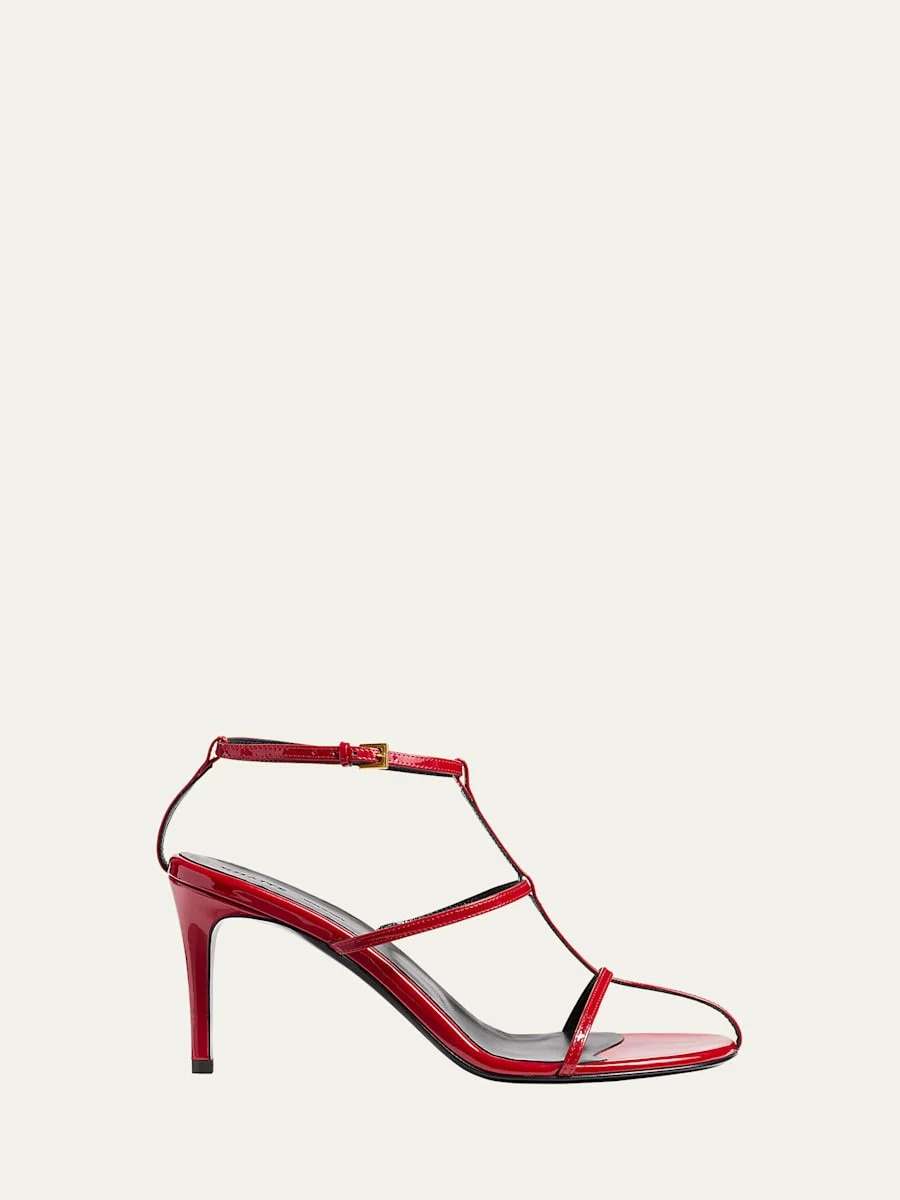 Khaite sandals in glossy calf leather 3.00 in / 75 mm stiletto heel Open toe T-strap vamp Unlined Adjustable ankle strap Leather outsole Professional cleaning recommended Made in Italy Online Inquiries: BGS21_X6TK9| Store Inquiries: #4963142