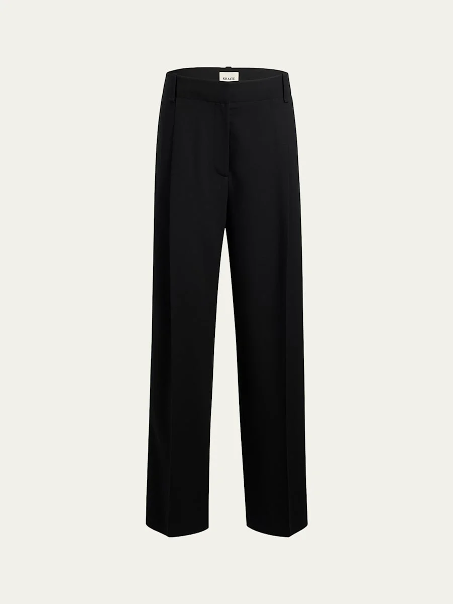 Khaite "Lenton" pants with a pintuck front Low rise Cropped at the ankle Straight legs Side slip pockets; back welt pockets Tab/zip fly; belt loops Viscose/wool/elastane Dry clean Made in USA Online Inquiries: BGS21_B9VBR| Store Inquiries: #4981468