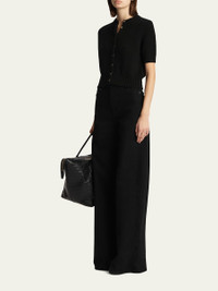 Khaite "Nora" knit buttonfront cardigan in cashmere Crew neckline Short sleeves Ribbed trim Cashmere Hip length Relaxed fit Dry clean Imported