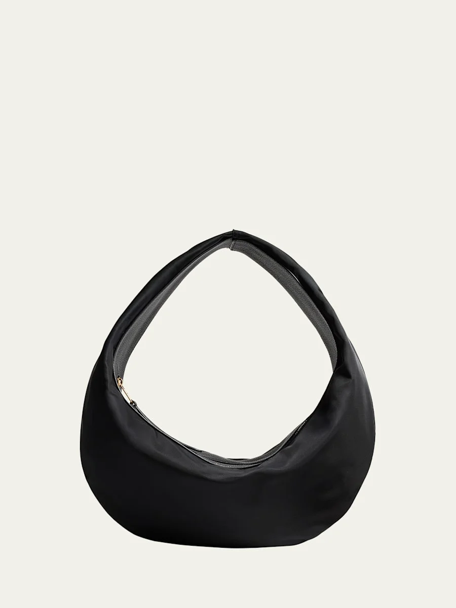 Khaite "Olivia" sport shoulder bag in nylon and pebbled leather Shoulder strap Zip top closure Approx. 9"H x 15"W x 7"D Professional cleaning recommended Made in Italy