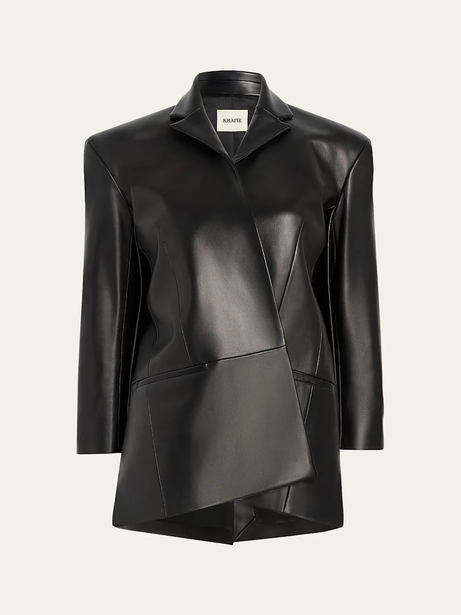 Asymmetric Paneled Leather Blazer