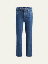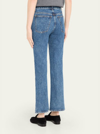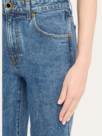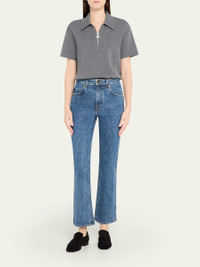 Khaite "The Vivian" jeans High rise Fivepocket style Fitted through hip and thigh Bootcut leg opening Cropped above ankle Button/zip fly; belt loops Cotton/polyurethane Dry clean Made in USA