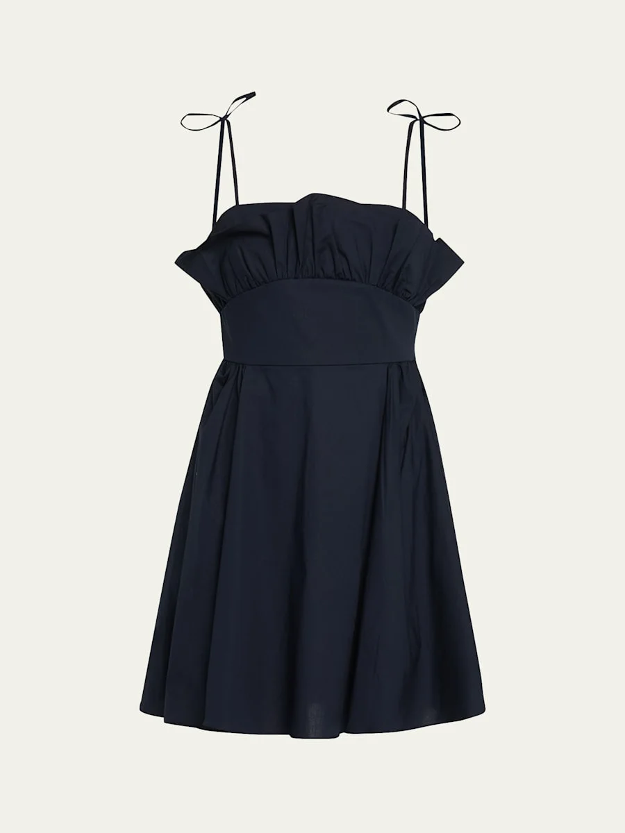 Kika Vargas "Mia" poplin dress is accentuated with a voluminous fanned bodice and framed with delicate self-tie shoulder straps Approx. 33"L from shoulder to hem Square neckline Sleeveless Hem falls above the knee A-line silhouette Invisible back zipper Cotton/elastane Made in Colombia Online Inquiries: BGS21_T6RER| Store Inquiries: #5025583