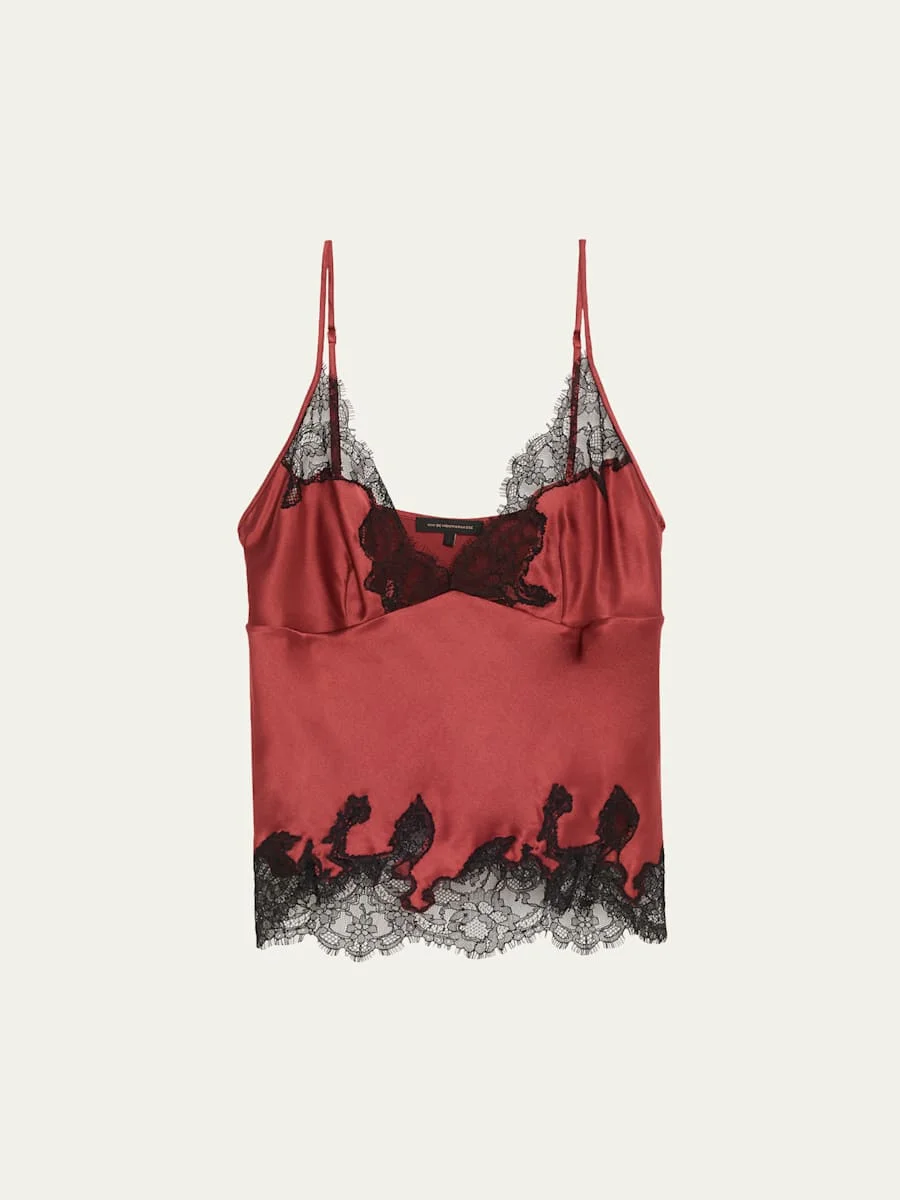 Cut from fluid, bodyskimming fabric, the "Giselle" cami from Kiki De Montparnasse is trimmed in feminine scalloped lace along the hem and bust V neckline Sleeveless Adjustable straps Vertical bust darts Empire waist Hip length Slim fit Pullover style Silk Imported