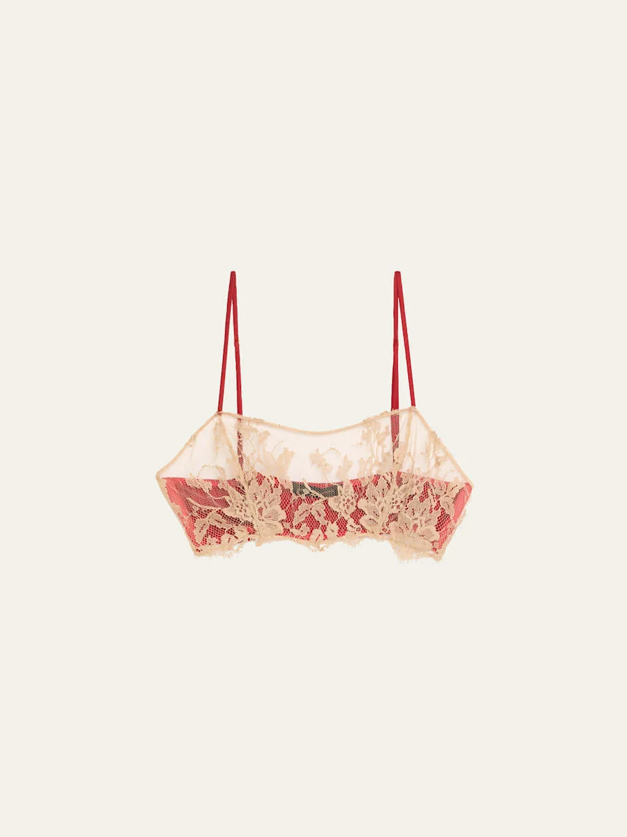 The "Orchid" bandeau bra from Kiki de Montparnasse is crafted of delicate sheer floral lace with a stretch silk back Scoop neckline Adjustable spaghetti straps Pullover style Silk/spandex Dry clean Imported
