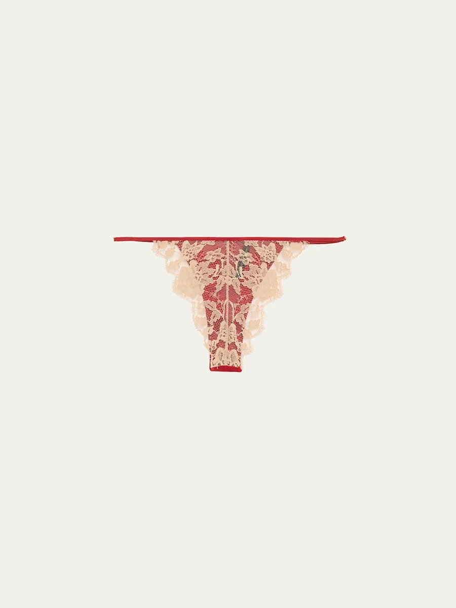 This Kiki de Montparnasse "Orchid" thong is crafted of delicate sheer floral lace with luxurious stretch silk back Elasticized waistband Adjustable sides Minimal seat coverage Cottonlined gusset Silk/spandex Dry clean Imported