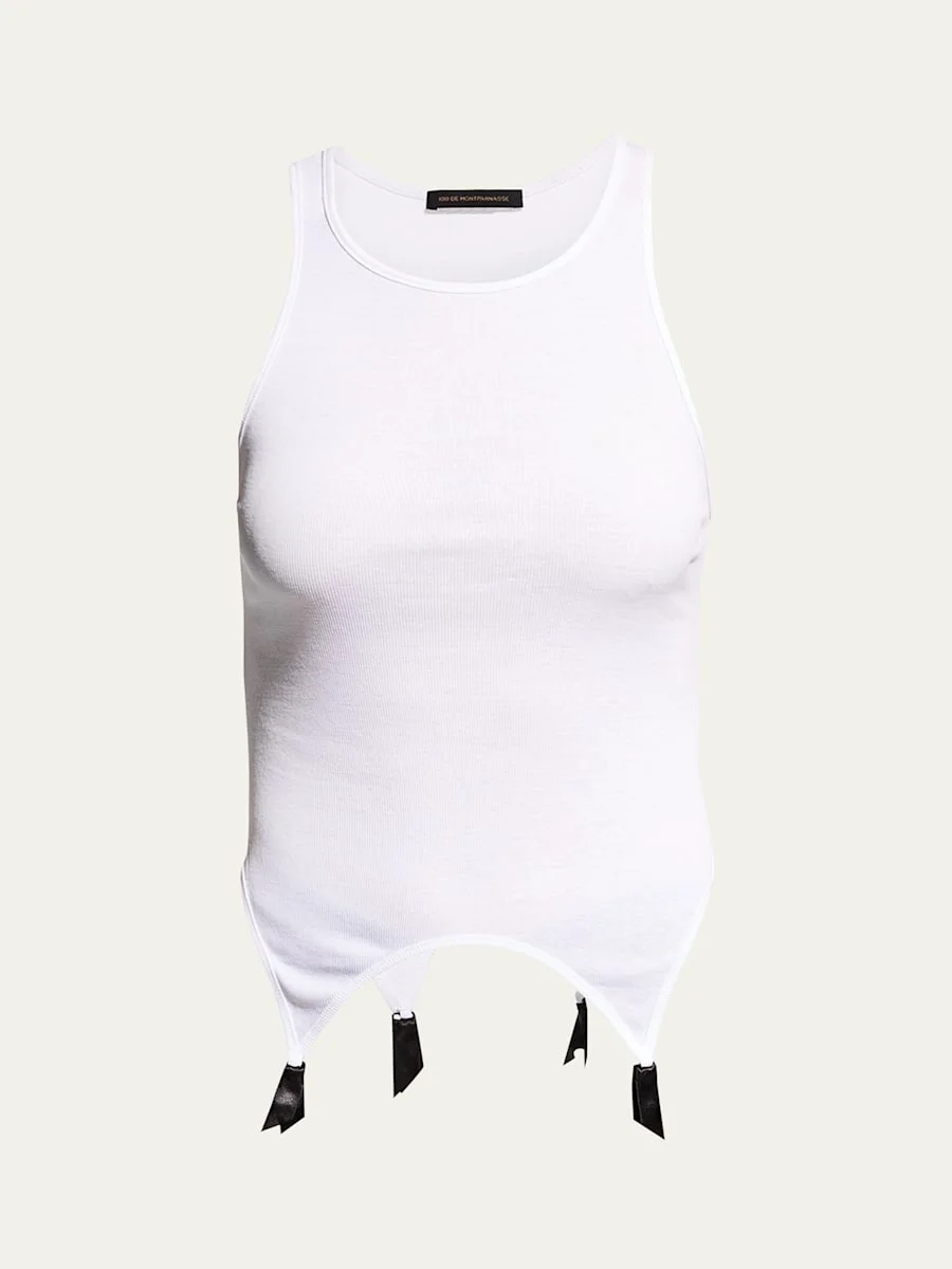 Kiki De Montparnasse rib-knit garter tank Scoop neckline Sleeveless Racerback Slipover style Garter straps Cotton Made in USA Model is 5'10"/177cm. Online Inquiries: BGS21_I2564| Store Inquiries: #4132738