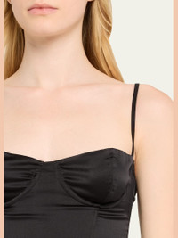 Kiki De Montparnasse "Tous Les Jours" bustier in silk stretch charmeuse Sweetheart neckline Sleeveless Adjustable straps Slim fit Hook-and-eye back closure Shaping Level: Medium control Silk/spandex Imported Model is 5'10"/177cm. Online Inquiries: BGS21_I2RTT| Store Inquiries: #4848370