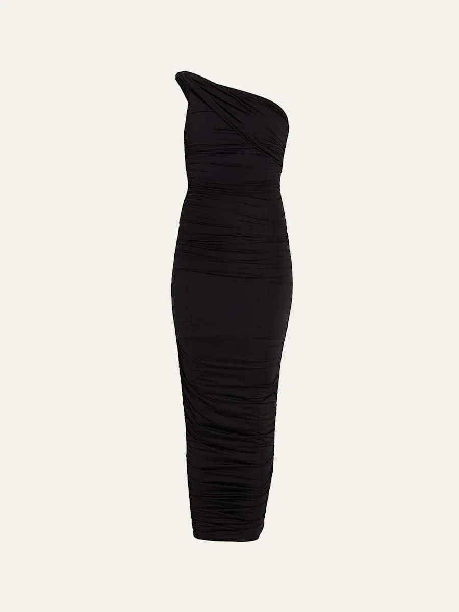 Made from lightweight stretch jersey, the "Cheryl" dress by L'Agence features allover shirring for ultraflattering figure definition Approx. 34.5"L from shoulder to hem Oneshoulder neckline Sleeveless Hem falls below the knee Sheath silhouette Invisible back zipper Amni® nylon/elastane Dry clean Imported