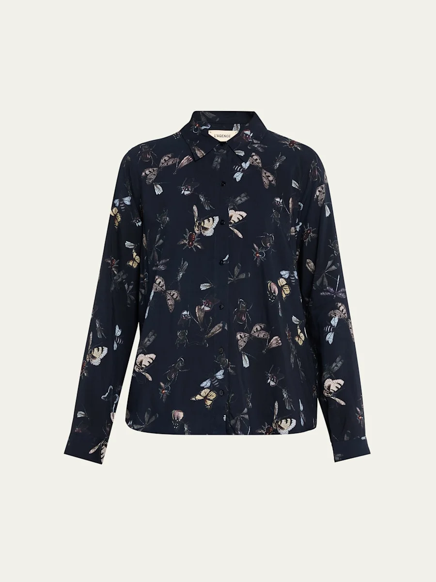 L'Agence's "Holly" blouse is styled with a playful insectinspired print Approx. 26.4"L from shoulder to hem Spread collar; button front Long sleeves; button cuffs Yoked back Relaxed fit Hip length Viscose Dry clean Imported