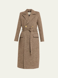 Crafted from wool-blend twill woven with hints of metallic, the "Kolina" coat by L'Agence is tailored for a striking, yet endlessly wearable silhouette Notched lapels; double-breasted front Padded shoulders Long sleeves Self-tie belt through belt loops Hip flap pockets Hem falls below the knee Relaxed fit Wool/Promodal® rayon/Amni® nylon Imported Online Inquiries: BGS21_T8RGM| Store Inquiries: #5368475