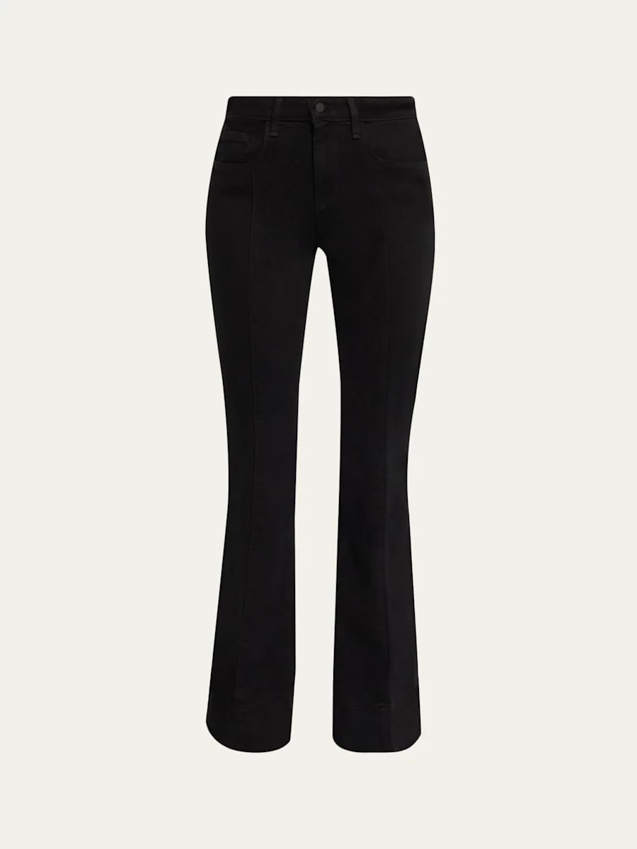 L'Agence "Lenora" seamed flare jeans in dark-wash denim Approx. 8.5" rise; 24" inseam High rise Five-pocket style Fitted through the hip and thigh Full length Button/zip fly; belt loops Cotton/polyester/spandex Made in USA Online Inquiries: BGS21_T61RQ| Store Inquiries: #4884277