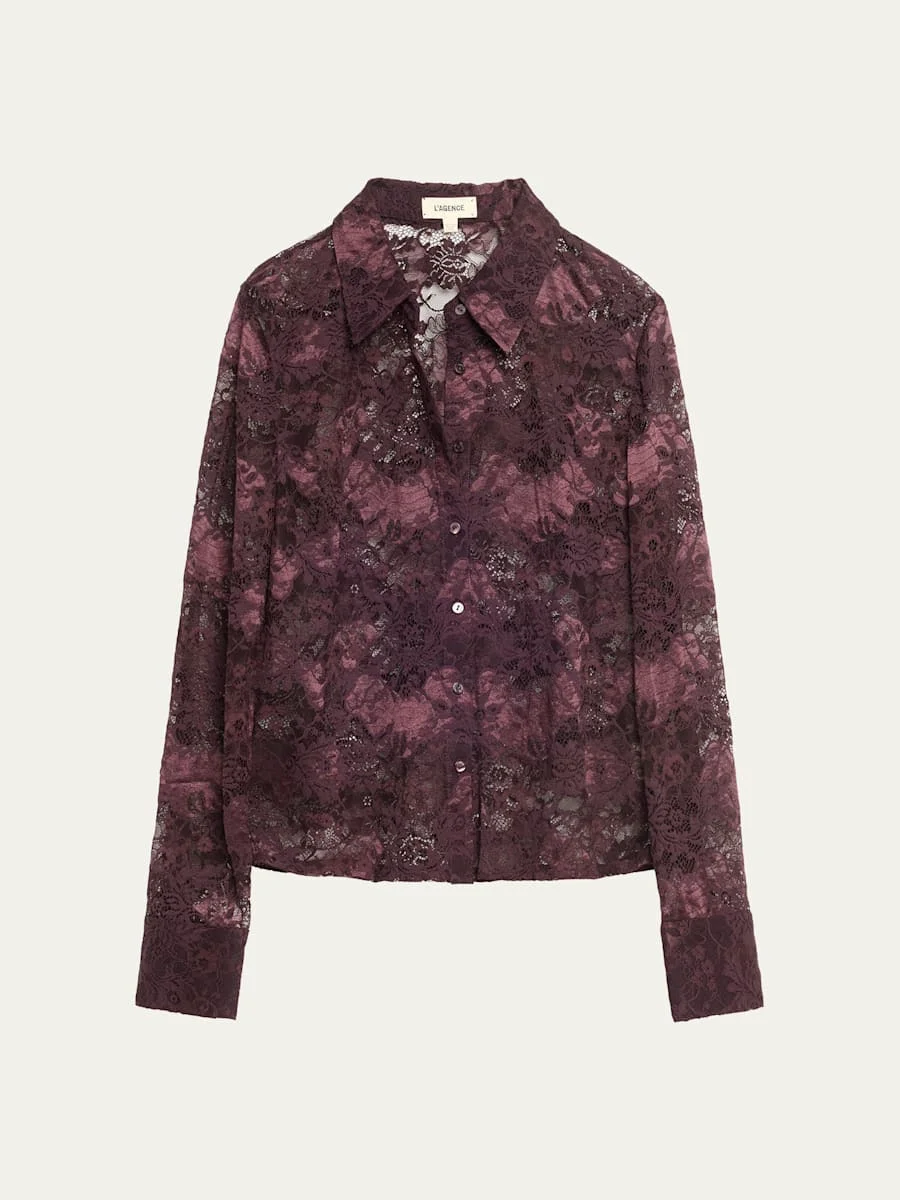 L'Agence's "Maia" blouse is crafted from sheer, floral chantilly lace Approx. 23.4"L from shoulder to hem Point collar; button front Long sleeves; button cuffs Relaxed fit Hip length Nylon/polyamide/polyester/cotton Hand wash Imported