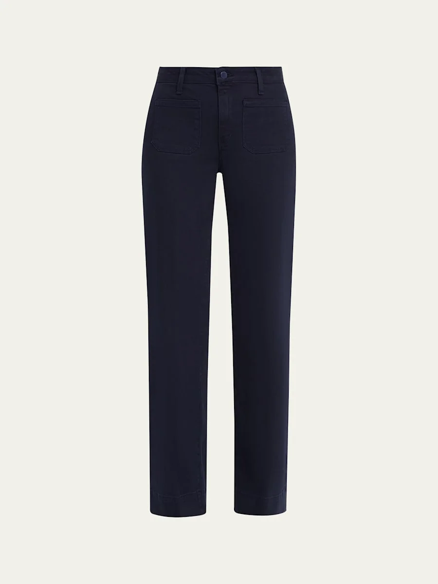 L'Agence "Nolan" 70sinspired jeans in stretch denim Approx. 33" inseam High rise Front and back patch pockets Wide legs Full length Button/zip fly; belt loops Cotton/spandex Machine wash Made in USA