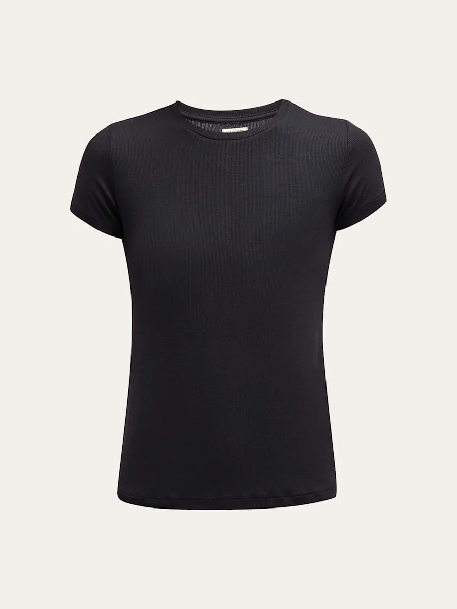 L'Agence "Ressi" classic tee Crew neckline Short sleeves Fitted silhouette Hem sits at the hip Pullover style Rayon/cellulose acetate/spandex Made in USA Model is 5'10"/177cm. Online Inquiries: BGS21_T4HHV| Store Inquiries: #4499431