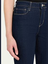 L'Agence "Ruth" straightleg jeans with a raw hem in darkwash denim Fivepocket style High rise Slim fit Full length Button/zip fly; belt loops Cotton/polyester/spandex Made in USA