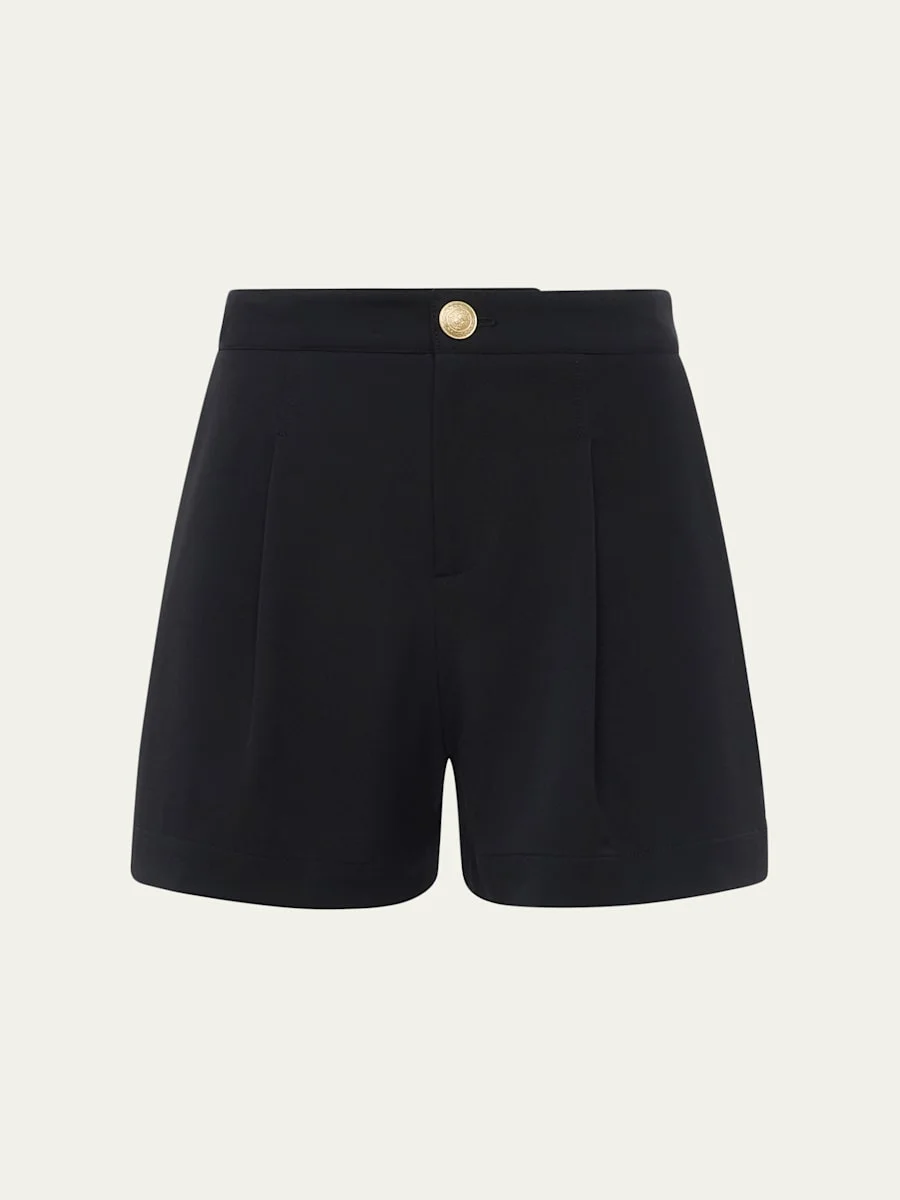 L'Agence "Saige Safari" shorts finished with front pleating and a golden embossed-dome button High rise Slanted side and back welt pockets Relaxed legs Button/zip fly Polyester Dry clean Imported Online Inquiries: BGS21_T6FC4| Store Inquiries: #4974961