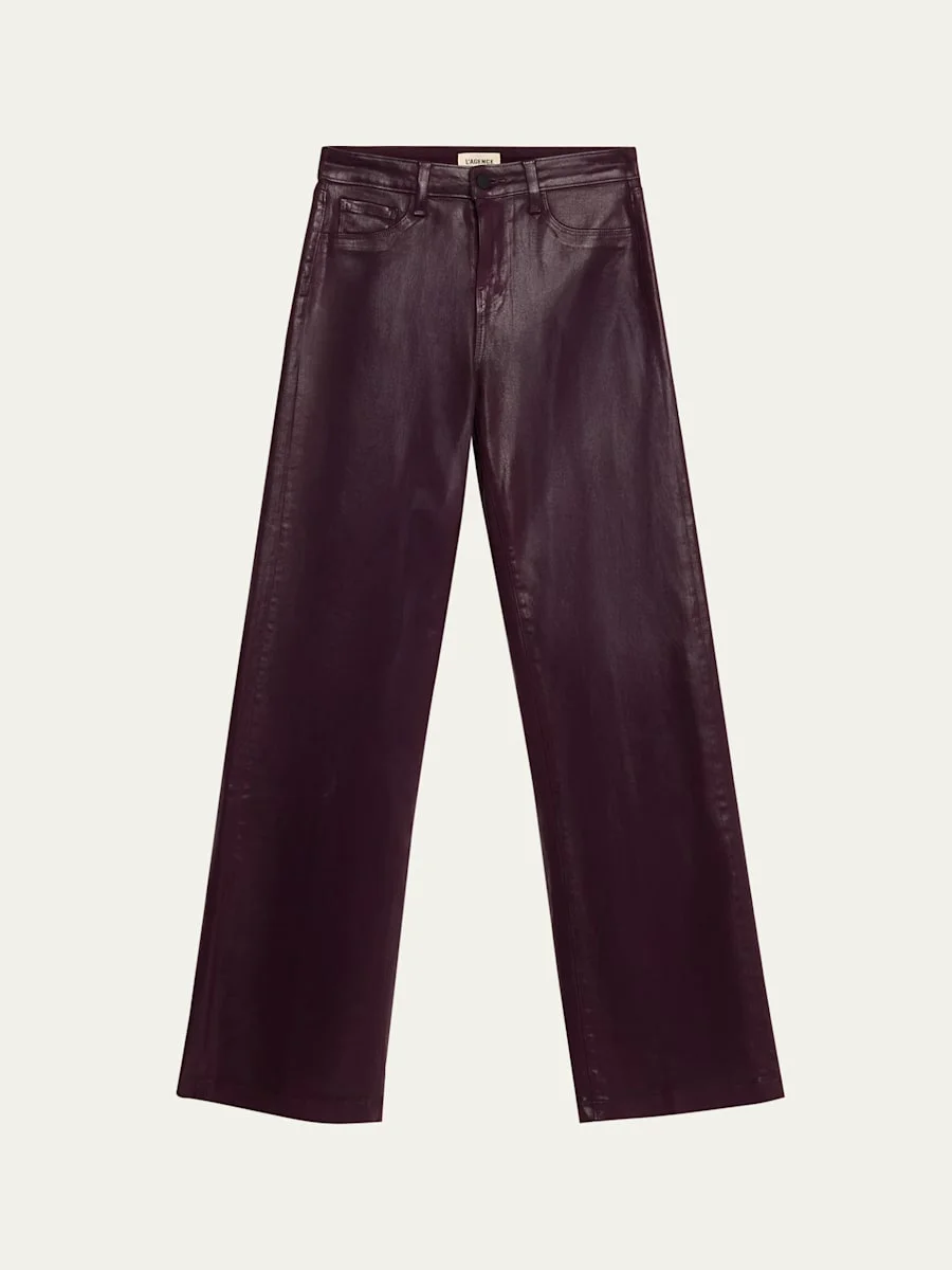 L'Agence "Scottie" jeans crafted from coated, stretch denim High rise Fivepocket style Wide legs Full length Button/zip fly; belt loops Cotton/elastane/spandex Dry clean only Imported
