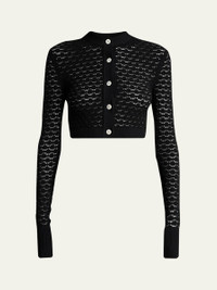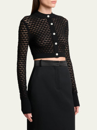 Lace Open-Knit Crop Crewneck Cardigan