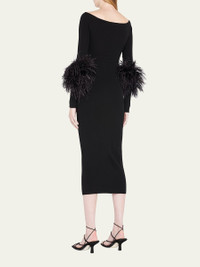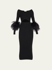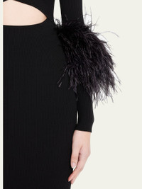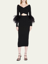 Criss-Cross Cutout Midi Dress w/ Feather Trim