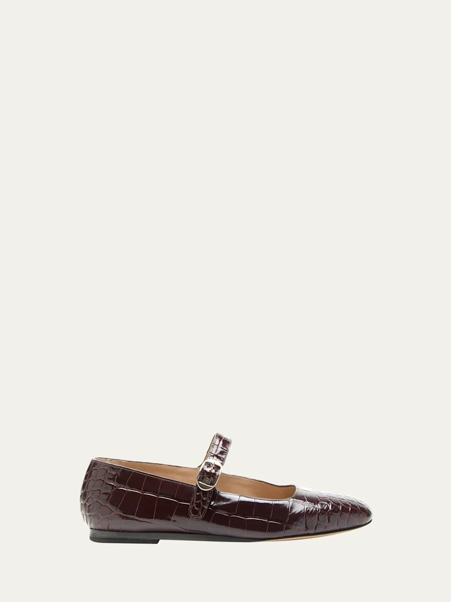 Croc-Effect Leather Mary Jane Ballerina Flats