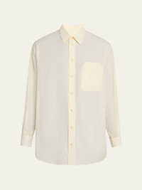 LEMAIRE sport shirt made from cotton crepe fabric with a slightly crinkled texture Point collar Button-down front Double patch pocket on left chest Long sleeves Squared barrel cuffs Box pleat at back yoke Shirttail hem Cotton Made in Italy Online Inquiries: BGS21_NCXDU| Store Inquiries: #4970910