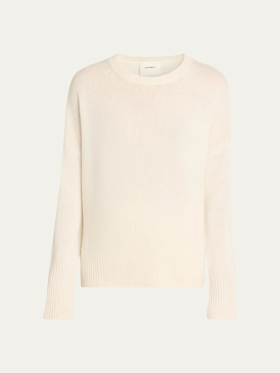 Lisa Yang "Mila" sweater is crafted from soft cashmere knit accented with ribbed trim Crew neckline Long sleeves Drop shoulders Relaxed fit Ribbed cuffs and hem Pullover style Cashmere Imported