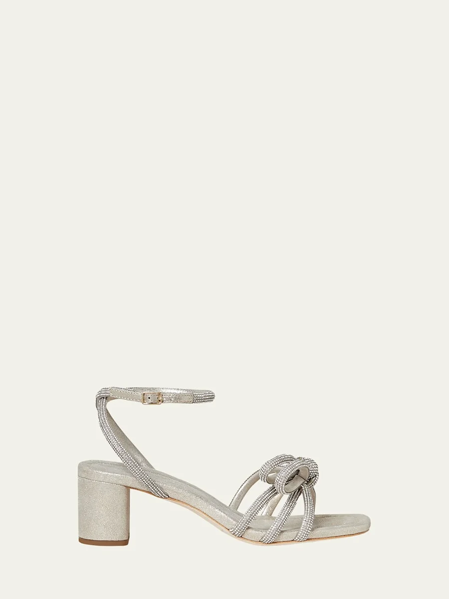 Loeffler Randall "Mikel" strappy sandals in shimmery strass suede 2.25 in / 55 mm block heel Open toe Caged vamp with bow accent Adjustable ankle strap Leather outsole Imported Online Inquiries: BGS21_X5RPT| Store Inquiries: #4322227