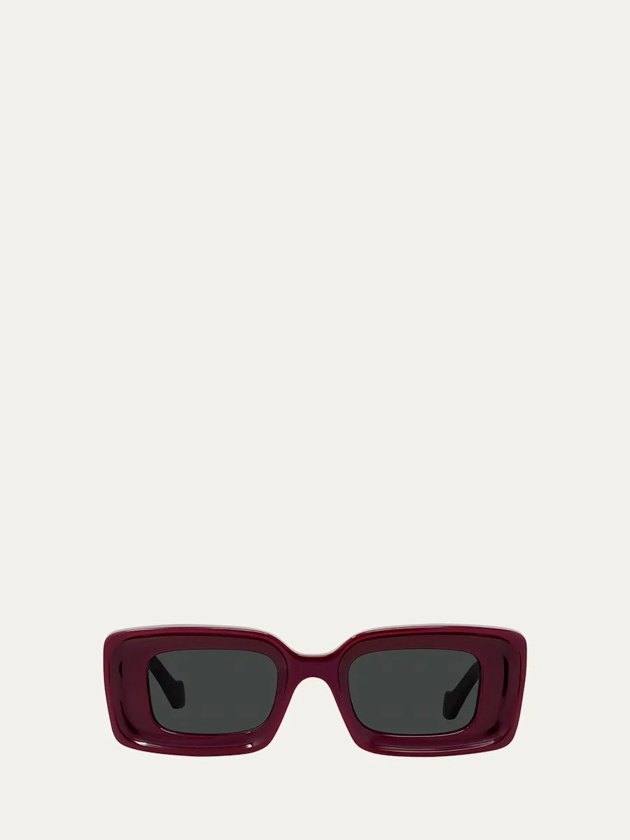 Loewe beveled rectangle sunglasses in acetate Solid lenses Saddle nose bridge Anagram on temples Wide, tapered arms Hand wash 100% UVA/UVB protection Made in Italy